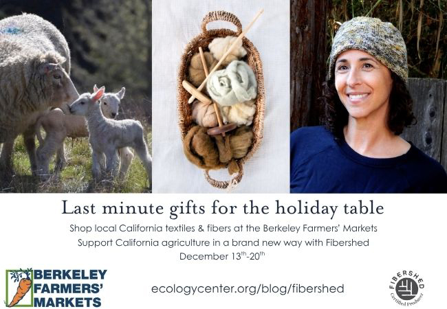 This December, the Berkeley Farmers’ Markets are getting into the holiday spirit with a special winter event. On December 13, 16, 18, and 20, the markets will bring fresh local food and incredible California grown and produced gifts made by our partners at Fibershed, a nonprofit that’s reshaping how textiles are grown, processed, designed, sewn, and worn.